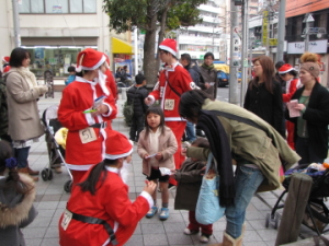 ワルツ所沢・西武所沢前で一休みのサンタみなさん |